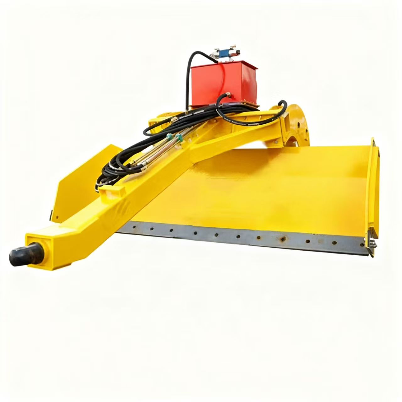 Het werkingsprincipe van een GPS-landnivelleringsmachine voorTractoris dat een lichtstraal wordt uitgezonden door de zender om het referentievlak van het land te vormen. De ontvanger wordt geïnstalleerd op de telescopische stang van het scheptransportgedeelte en na detectie van het signaal stuurt de ontvanger continu een signaal naar de bedieningskast. Na ontvangst van het signaal voert de schakelkast correcties uit. Het gecorrigeerde signaal bestuurt de hydraulische klep, verandert de stroomrichting en de stroomsnelheid van hydraulische olie naar de cilinder en regelt automatisch de hoogte van de schraper.