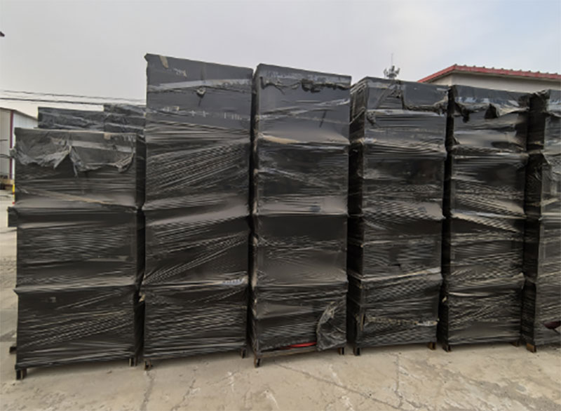 - Zwarte plastic folie beschermt de machine ook tegen regen en zonneschijn.