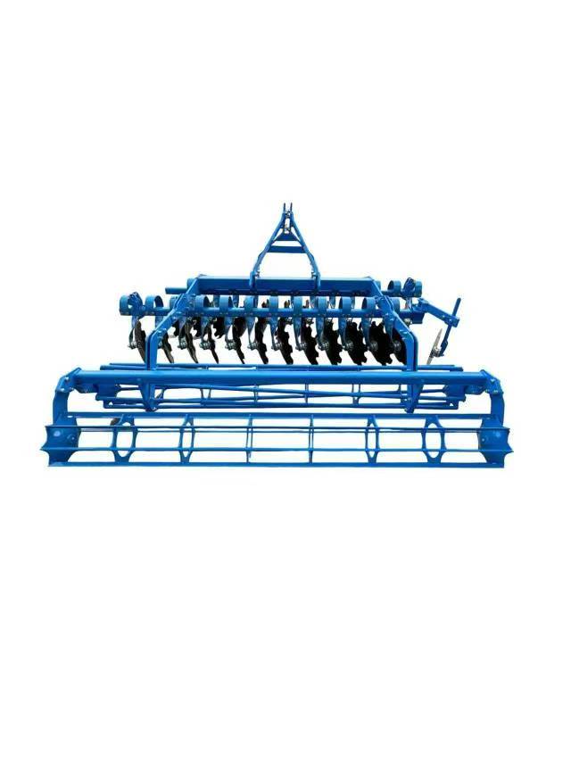 De Heavy Duty Stoppelvernietiger-eg beschikt over een volledig opgehangen structuur, met kerncomponenten zoals bladveer-egtanden, onderhoudsvrije lagers, slijtvaste schijven met een diameter van 510 mm, een kooi-aandrukrol en een hydraulisch nivelleringsmechanisme. Het hoofdframe is gemaakt van verdikt mangaanstaal en uitgerust met een 22-30 schijfmessensamenstel. En kan worden aangepast aan werkbreedtes van 2,5-3,5 m, afhankelijk van het model. Bovendien is de machine uitgerust met een kooi-egalisatierol, die de grond snel en effectief kan egaliseren na het verwijderen van stoppels, waardoor een solide basis wordt gelegd voor daaropvolgende plantwerkzaamheden.