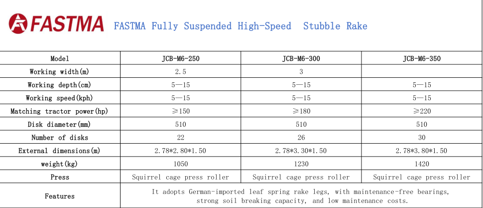 De Heavy Duty Stubble Destroyer Harrow heeft een werkbreedte van 2,5-3,5 m en kan, gecombineerd met een werksnelheid van 5-15 km/u, meer dan 100 mu land per dag bewerken, waardoor de efficiëntie van de landbewerking na de herfstoogst aanzienlijk wordt verbeterd. Tractor Getrokken Stoppelvernietiger Harrow, ontworpen voor tractoren met een vermogen van ≥150 pk, ≥180 pk en ≥220 pk, respectievelijk. Dat voldoet aan de behoeften van gebruikers met verschillende plantschalen. Het volledig geveerde ontwerp, gecombineerd met een hydraulisch niveauregelingssysteem, maakt bediening op afstand vanuit de tractorcabine mogelijk, waardoor de bediening zelfs voor beginnende gebruikers eenvoudig is.