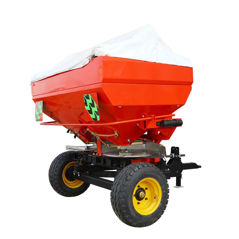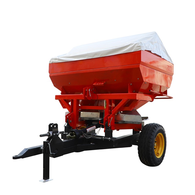 Tractie-kunstmeststrooier bestaat uit een corrosiebestendige trechter, een precisietransmissiesysteem en een stevig tractieframe. Tractie kunstmeststrooier werkt door gebruik te maken van tractiekracht om de strooischijf aan te drijven, die de kunstmest gelijkmatig verspreidt via centrifugaalkracht, met verstelbare schotten die de opbrengst regelen.